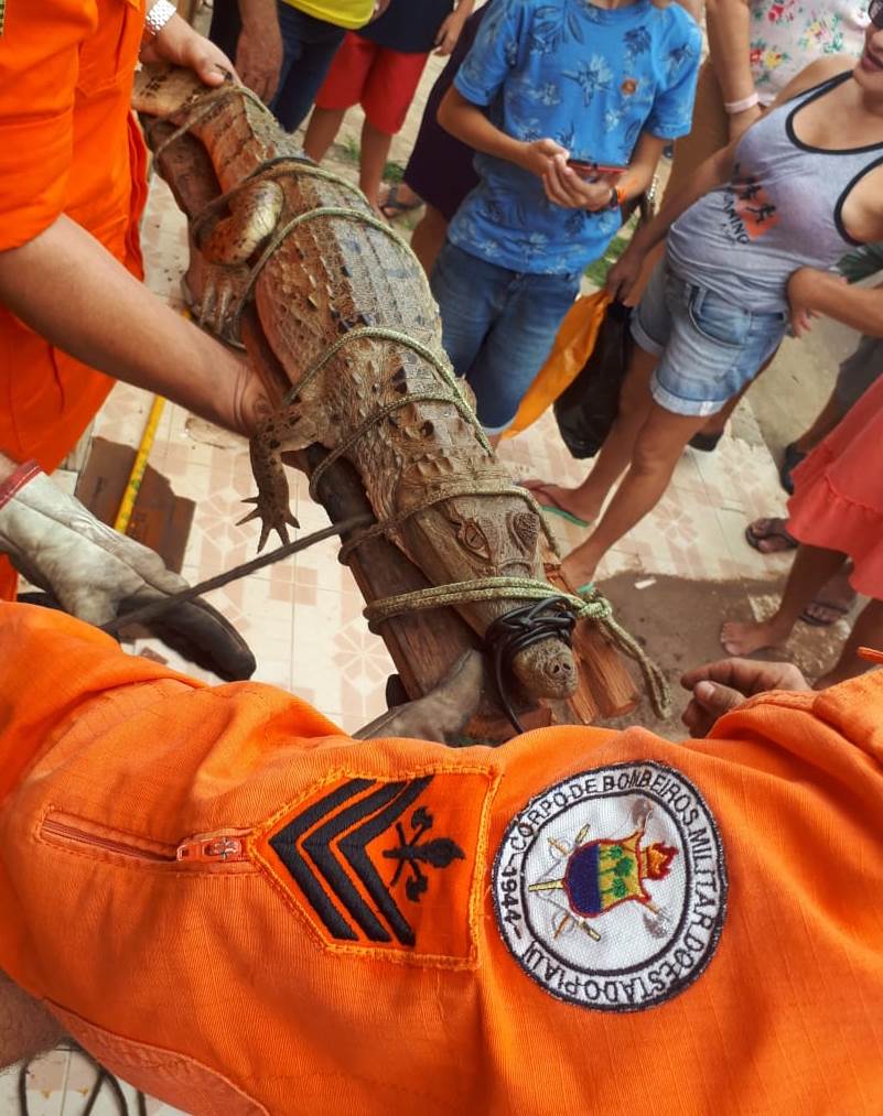 O Corpo de Bombeiros de Picos realizou, na manhã desta terça-feira (02) a captura de um jacaré no bairro Cohab, em frete a uma residência na Quadra 9.