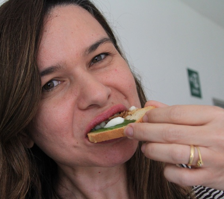 Provando a brusqueta de grilo, ela não poupou elogios. “Imaginei que estava comendo um camarão delicioso e as larvas têm um sabor defumado muito interessante. Eu acho que posso introduzir isso na alimentação e também acredito que podemos estudar isso dentro da universidade, dentro do mercado alimentício para nós que consumimos carne”, expressa.