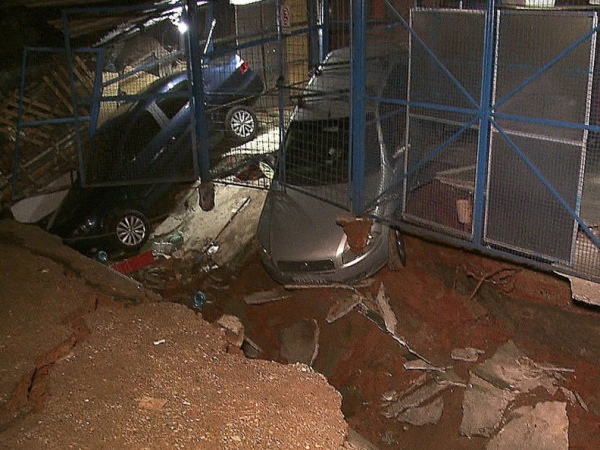 Quatro veículos foram engolidos por uma cratera que se abriu em um conjunto habitacional na Zona Norte de São paulo nesta segunda-feira (4). Os carros estavam estacionados no local, sem passageiros presentes no momento.