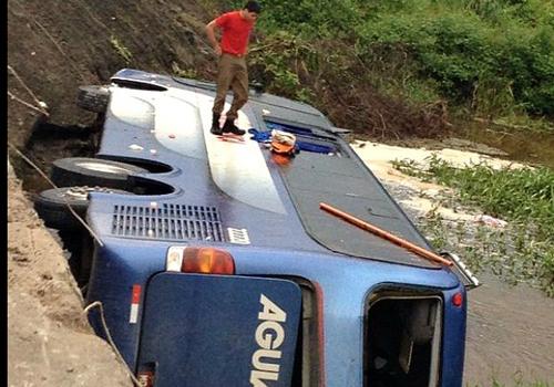 Criança de dois anos e homem morrem após ônibus cair em rio