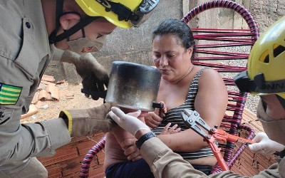 Uma criança, de 2 anos, ficou com a cabeça presa em uma panela de pressão e foi resgatada pelo Corpo de Bombeiros da cidade de Carmo do Rio Verde, em Goiás, na última terça-feira (10).