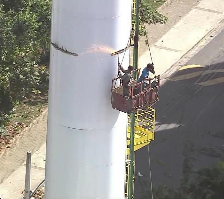 Um flagrante registrado pelo Globocop no início da tarde desta quarta-feira (3) mostrou criminosos usando dois guindastes para tentar roubar um reservatório de água do condomínio Minha Casa Minha Vida, em Triagem, na Zona Norte do Rio.