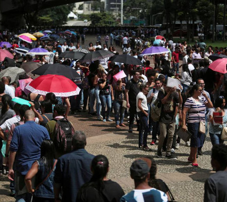 O nível de ocupação (46,8%) também o mais baixo da série histórica, com queda de 2,7 pontos percentuais ante o trimestre anterior (49,5%), quando, pela primeira vez na história da pesquisa, o índice ficou abaixo de 50%. Ou seja, a fatia de brasileiros que não está trabalhando ficou ainda maior no país.
