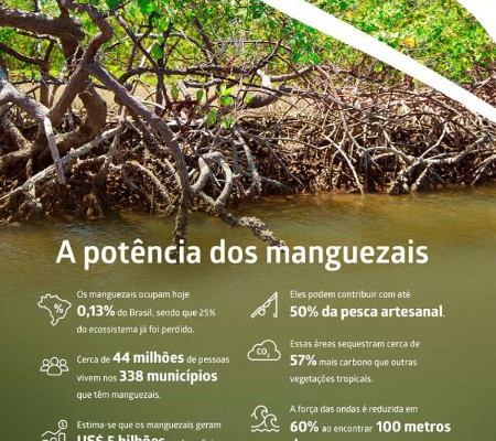 Além de oportunidades para a geração de renda, os manguezais são reconhecidos por sua contribuição para a manutenção da vida marinha, sendo o espaço apropriado para a reprodução e desenvolvimento de inúmeras espécies, e também pela proteção costeira, oferecendo segurança diante do aumento do nível do mar provocado pelas mudanças climáticas.