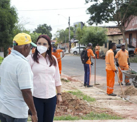 O primeiro dia útil após a posse da prefeita Dinair Veloso, foi de bastante trabalho nesta segunda-feira (4). Dinair foi às ruas para acompanhar a primeira ação da Secretaria de Limpeza Pública e Urbanismo. A extensão da Avenida 3, que corta os bairros Formosa, São Benedito, Parque Piauí e Parque União, foi o local escolhido para o início das atividades pela manhã, com a realização de podas alta e baixa de árvores, limpeza de bocas de lobo, reposição de tampa de bueiros, tapa-buracos, limpeza de calçadas, substituição de meios-fios, desobstrução de valas para o escoamento de água e roço da grama, além de trocas de lâmpadas realizadas pelo DEMIP.