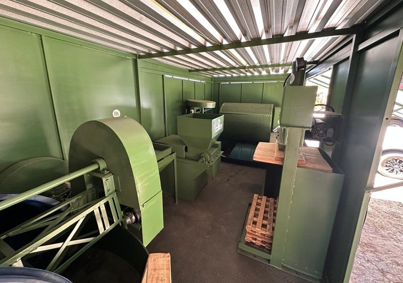 As unidades são montadas sobre carretas rebocáveis, equipadas com maquinário completo para transformar a mandioca em farinha e goma. De uso prático e com baixa demanda operacional, cada estrutura pode processar até mil toneladas por dia.