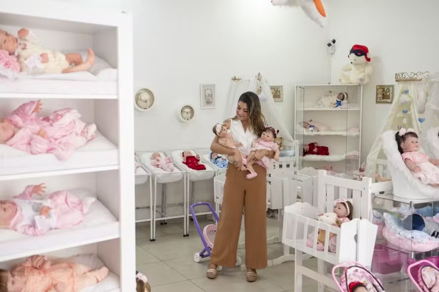 A demanda por reborns vai muito além das crianças. Muitos adultos — especialmente mulheres — adquirem os bonecos como forma de lidar com perdas, curar traumas emocionais ou mesmo reviver a experiência da maternidade.