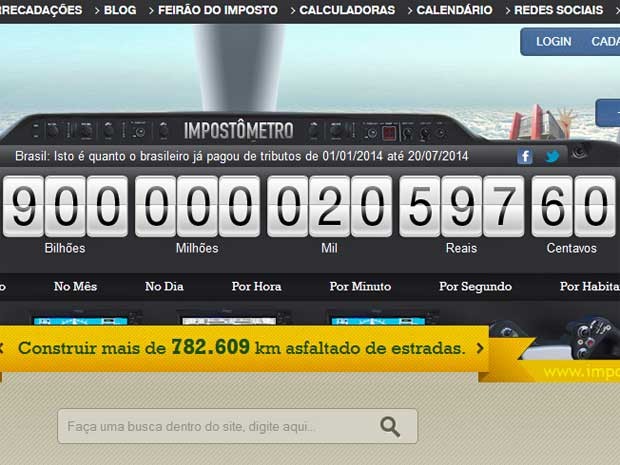 O total de impostos pagos pelos brasileiros também pode ser acompanhado pela internet, na página do Impostômetro. Na ferramenta, criada em parceria com o Instituto Brasileiro de Planejamento Tributário (IBPT), é possível acompanhar quanto o país, os estados e os municípios estão arrecadando em impostos.