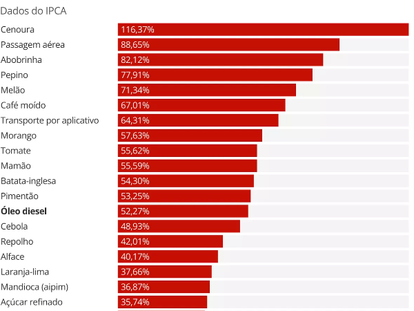 Veja abaixo a lista com os itens que mais subiram de preço em 12 meses até junho: