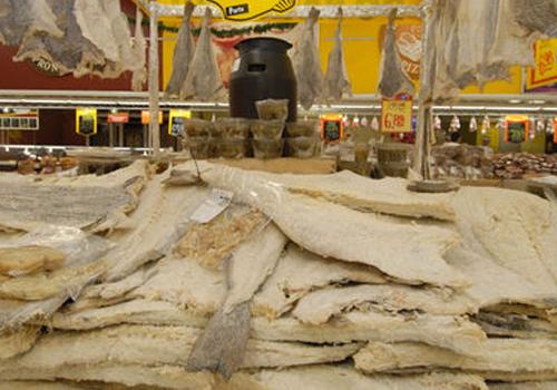 O novo alimento incluído foi o bacalhau desfiado, que substitui temporariamente a alcatra e que já apresentou uma enorme diferença de preços entre os quatro supermercados, chegando a ser encontrado por quase R$ 70 o quilo do produto desfiado.