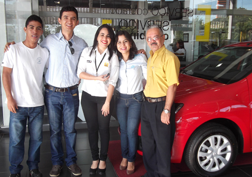 A programação do Sandero Day na Via Paris, que inclui café da manhã para os clientes, teve início com a entrega do primeiro novo Sandero vendido no Estado. O casal formado pela bancária Ana Dulce Cardoso e pelo dentista Eryson Thiago Prado adquiriu o carro durante o lançamento do veículo na Via Paris.
