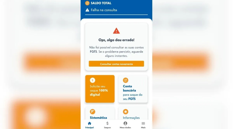 Segundo os relatos, aparecem mensagens como “sem contas FGTS”, "saldo total das contas zerados", ou “não foi possível consultar as suas contas do FGTS”.