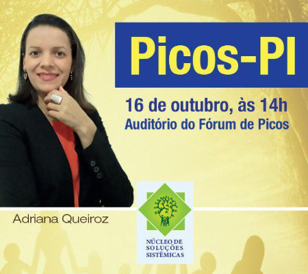 O projeto Leis Sistêmicas a Serviço da (Re)conciliação promoverá uma edição especial da Constelação Familiar na cidade de Picos, localizada a 320 km de Teresina. A atividade é uma realização do Centro Judiciário de Solução de Conflitos (Cejusc) junto do Núcleo Permanente de Métodos Consensuais de Solução de Conflitos (Nupemec), com o apoio da Escola Judiciária do Estado do Piauí (Ejud-PI), e será coordenada pela facilitadora Adriana Queiroz. A prática será realizada no Auditório do Fórum José Nunes de Barros, localizado à rua Joaquim Baldoino, n.º 180, bairro Bomba, no horário das 14h às 18h.