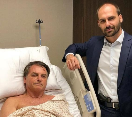 Eduardo Bolsonaro compartilhou em seu Instagram um clique da visita feita ao pai, o presidente Jair Bolsonaro, no hospital Vila Nova Star, em São Paulo, onde se recupera da cirurgia na região do abdômen. As informações são do UOL.