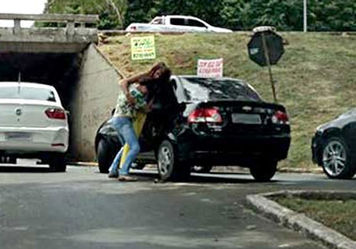 Uma briga de trânsito entre duas mulheres em uma tesourinha da quadra 103 Norte, em Brasília, precisou ser apartada por motoristas que passavam pelo local na tarde de quarta-feira (12).
