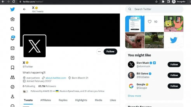 No final da noite de domingo (23), o novo logotipo também surgiu projetado nos escritórios da empresa em São Francisco, nos Estados Unidos, criando uma atmosfera de mistério e antecipação. Tanto o perfil de Elon Musk quanto o da CEO da rede social, Linda Yaccarino, agora exibem o distintivo "X" como parte da identidade visual atualizada, embora o icônico pássaro azul do Twitter ainda esteja presente em toda a plataforma.