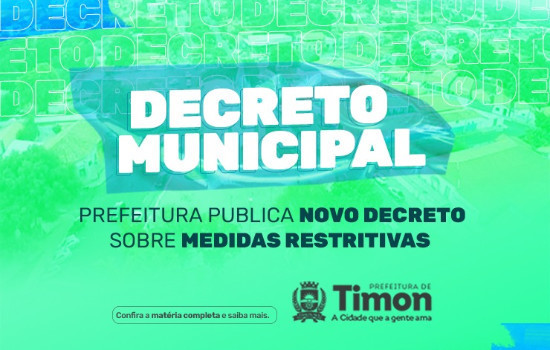 A Prefeitura de Timon publicou, na edição deste domingo (12) do Diário Oficial do Município, novo decreto sobre medidas restritivas durante a pandemia de Covid-19. As decisões são tomadas semanalmente após avaliação dos dados epidemiológicos na cidade.