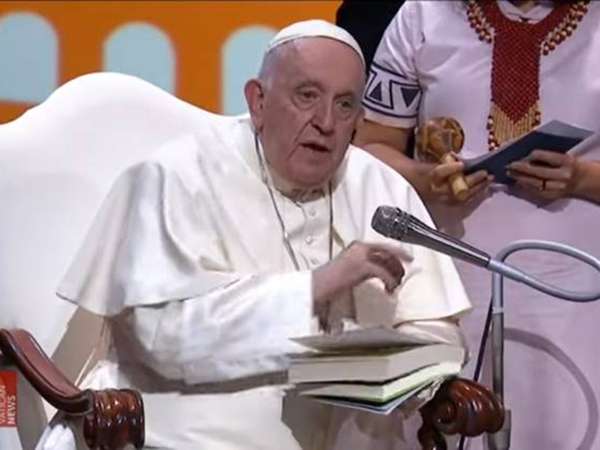 O Papa então responde ao microfone: "Você trouxe o livro, mas não trouxe a cachaça?". A brincadeira gerou risos na plateia que acompanhava o evento "A Economia de Francisco".
