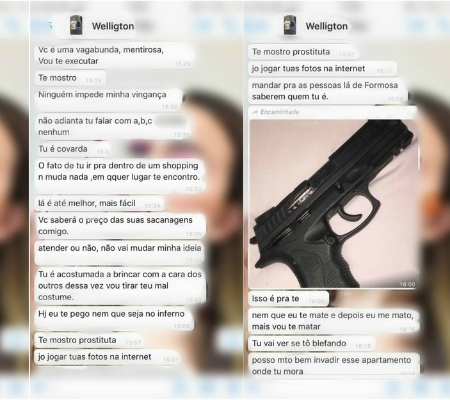 De acordo com a delegada da Mulher, Kazumi Tanaka, Wellington não aceitava o fim do relacionamento e, desde o início da semana, a jovem começou a receber uma série de ameaças. Em uma das mensagens, Wellington envia a ela a foto de uma pistola calibre .40 que segundo ele, seria usada para matar a jovem.