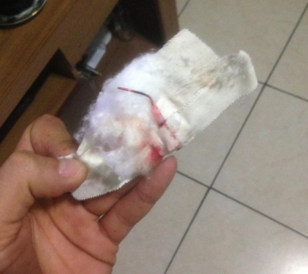Souza afirma que a enfermeira levantou o esparadrapo e puxou o acesso de forma brusca, recolocou a atadura e o liberou em seguida. “Chegando em casa, eu tava meio sonolento e deitei na cama para descansar. Só que fiquei sentindo uma ardência no braço. Aí fui no banheiro para tomar banho e, na hora que fui tirar o esparadrapo, a agulha estava lá. Por mais que seja uma haste flexível, é um corpo estranho que poderia me causar uma infecção”, relata.