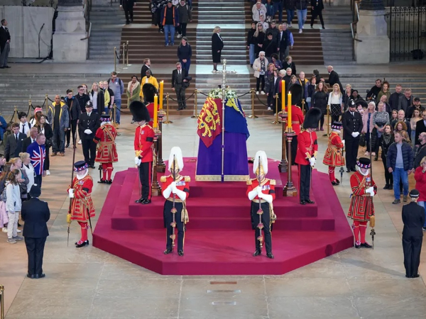 O transporte do caixão da rainha fica a cargo da carruagem da Marinha Real, produzida há 123 anos e conduzida por 98 marinheiros. Às 6h40, o corpo da chefe da monarquia é transportado para a Abadia de Westminster.
