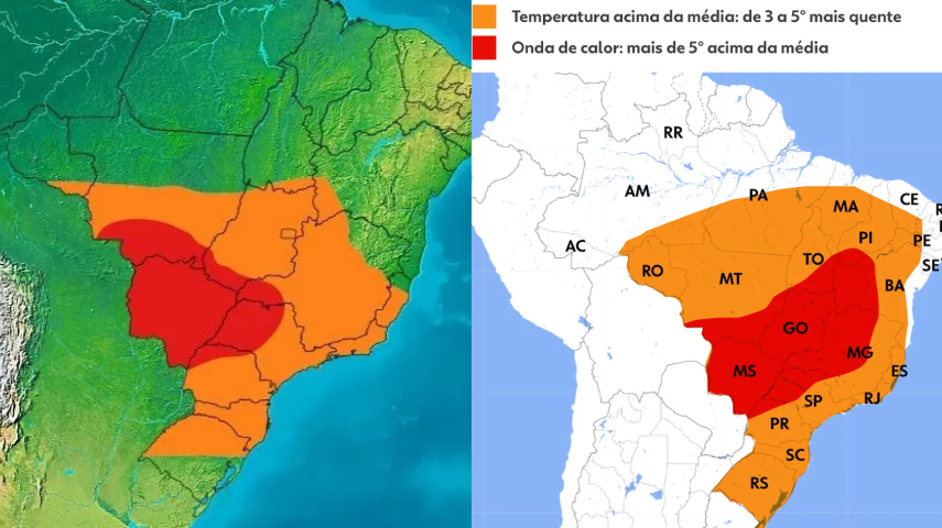 TEMPERATURA ACIMA DA MÉDIA: O Brasil enfrenta sua quarta onda de calor desde o início do ano, com previsões de altas temperaturas até 2 de maio, principalmente nas regiões centro-sul. Os termômetros devem ficar entre 3 a 5 graus acima da média em grande parte do país, com registros superiores a 5 graus acima da média em algumas áreas específicas.