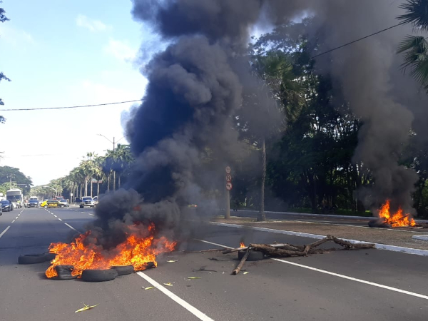 Houve queima de pneus e o clima ficou tenso com a chegada do Corpo de Bombeiros, para apagar as chamas.