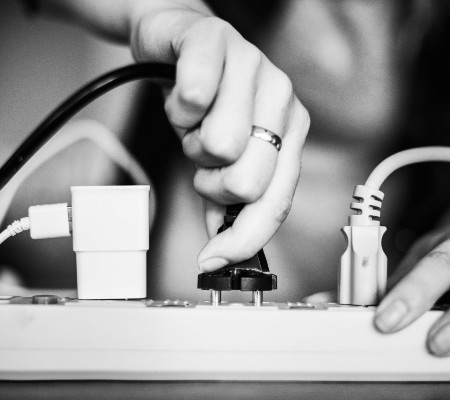 Usar filtro de linha como opção para ligar vários equipamentos ao mesmo tempo, mantendo a distância de superfícies e áreas com água;