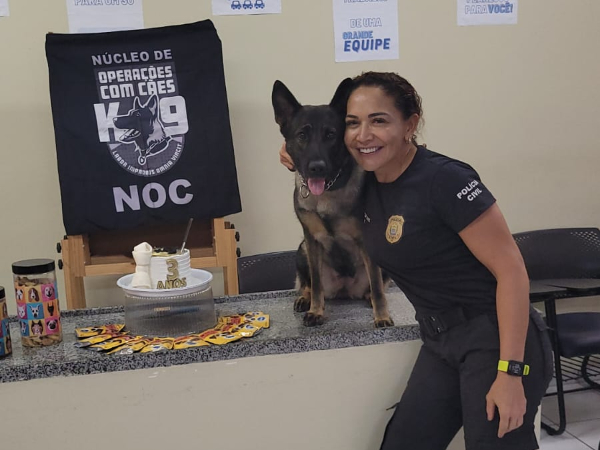 Catrina completou três anos de idade e é responsável pela detecção de drogas, armas e munições através do faro durante operações e diligências cotidianas da Polícia Civil.