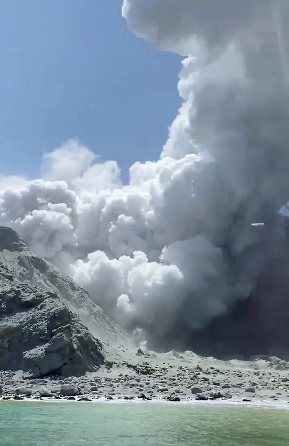 O vulcão, também conhecido como Whakaari, entrou em erupção, lançando rochas, cinzas e muita fumaça, pouco depois das 14h (no horário local).