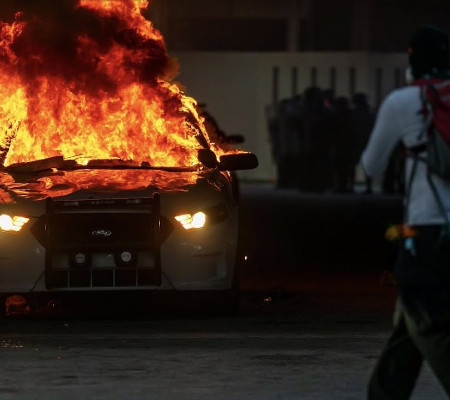A cidade de Washington foi palco de manifestações durante todo o domingo (31), atos que atravessaram a madrugada desta segunda-feira (1º). Manifestantes atearam fogo em barricadas montadas em ruas próximas à Casa Branca.