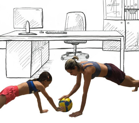 Como fazer: em formato de prancha, tocar a mão na bola quando ouvir o comando de "direita" e "esquerda"