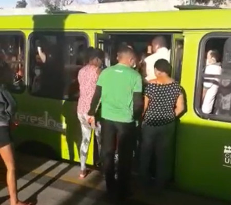Um vídeo que viralizou nas redes sociais mostra um ônibus lotado com passageiros em um dos terminais de Teresina. Nas imagens é possível ver o veículo completamente cheio de pessoas, desrespeitando as medidas de distanciamento social e sem o uso da máscara.