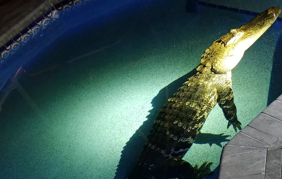 Nesta semana, uma família de Deep Creek, na Flórida, acordou com barulhos. Ao levantar para checar o que era, deram de cara com o animal dentro de sua piscina, informou o Gabinete do Xerife do Condado de Charlotte nas redes sociais.