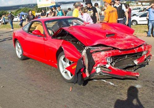 Uma Ferrari modelo 550 Maranello, avaliada em R$ 375 mil ficou bastante destruída na tarde deste sábado (24) após se envolver em um grave acidente no km 21 da BR-020, saída norte do Distrito Federal.
