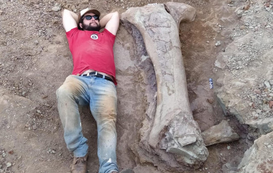 Para mostrar a escala do tamanho do osso, o próprio Leonardo tirou uma foto, deitando-se ao lado do fóssil. Também foram escavadas vértebras, ossos longos, costelas e diversos pequenos fragmentos.