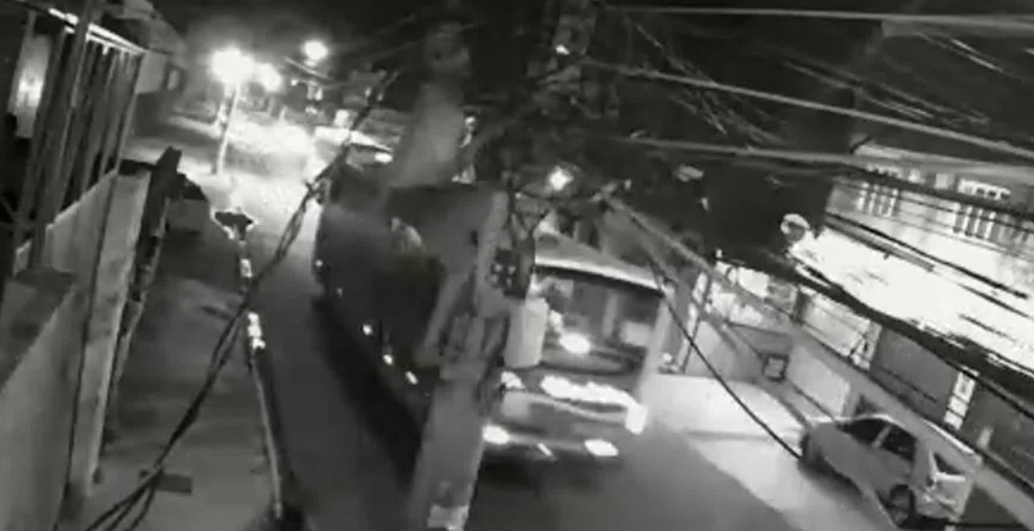 Imagens gravadas por câmeras de segurança mostram um homem escalando um poste para furtar os cabos. O criminoso chega a deitar sob os fios.