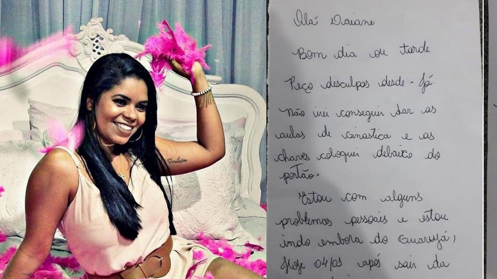 Funcionários de uma academia onde trabalhava a professora de educação física Karla Oliveira, de 27 anos, desaparecida há cinco dias, encontraram um bilhete dela dizendo que sairia da cidade por "problemas pessoais". O caso é investigado pela Polícia Civil em Guarujá, no litoral do estado, que ainda não tem informações sobre o paradeiro da mulher.