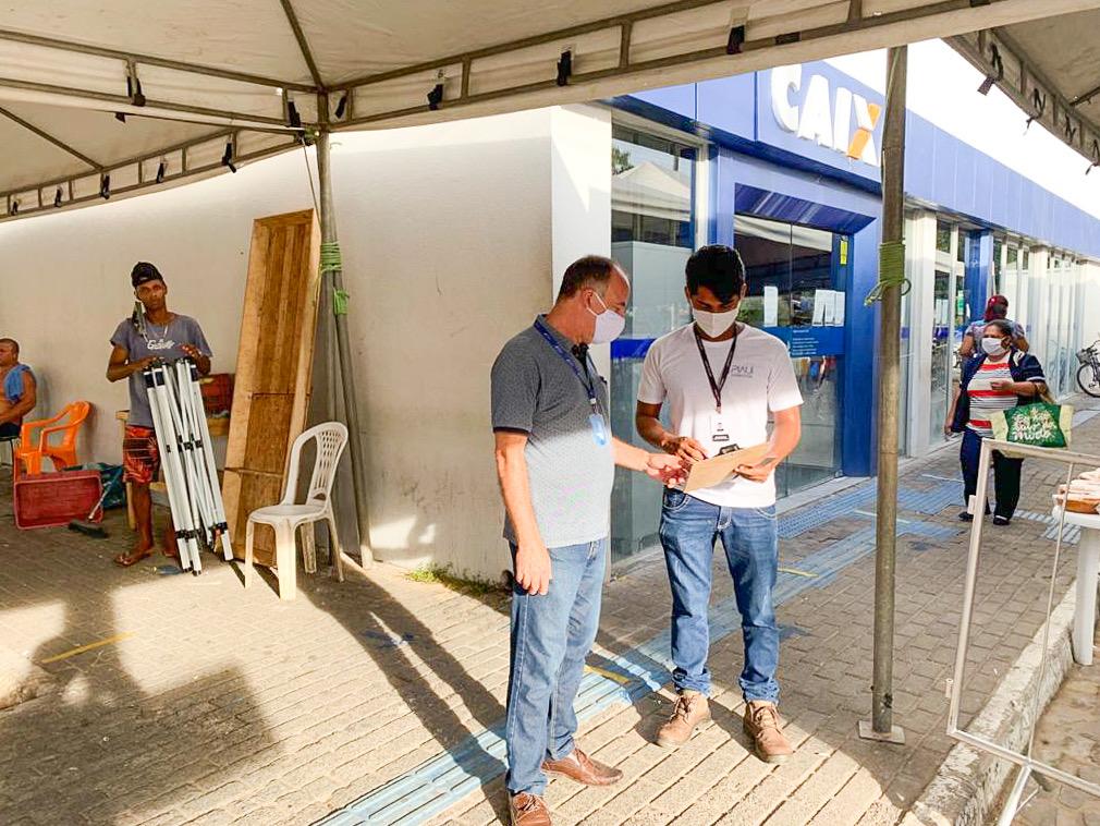 Esse suporte vai acontecer nas agências do banco onde foram montadas as estruturas de proteção e grades, são elas: Avenida Barão de Gurguéia, Avenida Presidente Kennedy, do Parque Piauí e Dirceu Arcoverde I, que também estarão preparadas com pontos de Wi-Fi Piauí Conect. Serão dois colaboradores em cada agência, que irão ajudar a baixar o aplicativo da Caixa e orientar sobre seu uso. Eles também poderão consultar a página do auxílio emergencial do beneficiado direto do tablet.