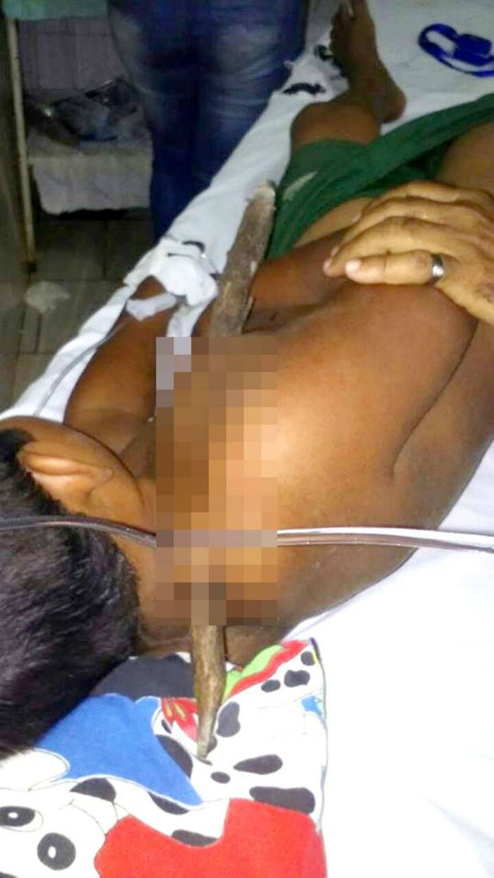 A criança foi levada, inicialmente, para Unidade de Saúde do município ainda com o galho em seu corpo, debaixo do peite atravessando por trás do ombro. Em seguiuda, foi encaminhada para Hospital de Urgêncina de Teresina (HUT).