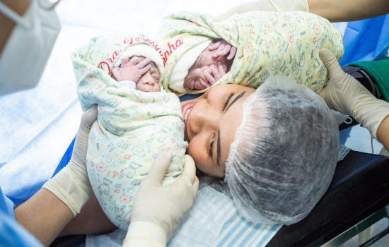 "Há 2 anos fiz uma abdominoplastia [cirurgia plástica no abdômen] , e há 8 meses que fiz redução dos seios, então não imaginava engravidar. Mas quando descobri a gestação, parece que senti que seriam gêmeos. Eu não imaginava que nasceriam dentro da bolsa, foi muito emocionante", conta.