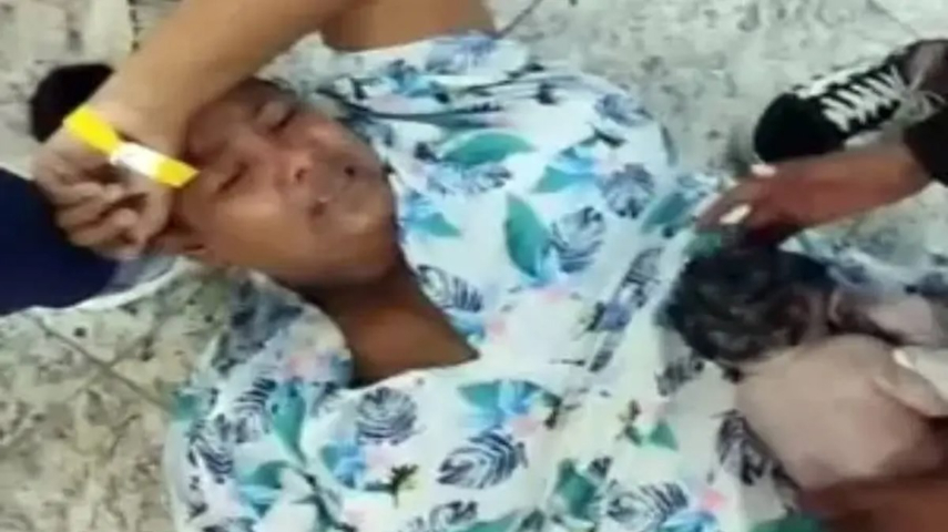 Queli Santos Adorno, 35 anos, teve negada assistência na maternidade Santa Cruz da Serra, em Duque de Caxias (RJ), mesmo estando em trabalho de parto. Desamparada, deu à luz a um menino no chão da recepção.