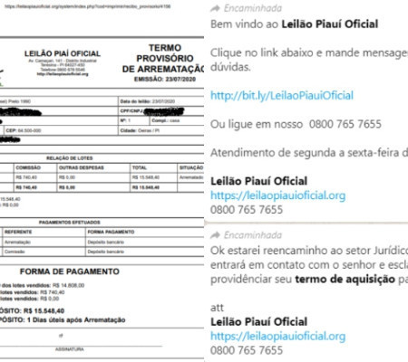 Um quadrilha tentou aplicar um golpe contra um empresário na cidade de Oeiras, no sul do Piauí, através da clonagem de um site de leilões. De acordo com informações da vítima, em reportagem ao portal Integração, eles entraram em contato via whatsapp, enviaram um link como suporte para tirar dúvidas, um número para chamada e o link do site.