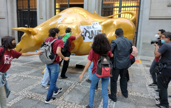 "Nesta semana, a Bolsa de Valores instalou a estátua do Touro de Ouro no Centro de São Paulo. O que para eles simboliza a força do mercado financeiro, para nós é um símbolo da fome, da miséria e da superexploração do trabalho. Mas, também é um lembrete de que continuaremos na luta por uma vida com dignidade. E é por isso que hoje fizemos essa ação simbólica de protesto", afirmam.