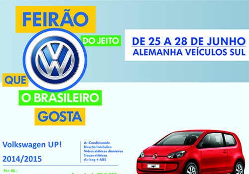 Dentre as ofertas estão o Gol G6 , o carro mais vendido do Brasil, a partir de R$ 29.990 ou entrada mais parcelas de R$ 499 e o lançamento UP! modelo 2015 com ar, direção, vidro, travas air-bag e abs por $ 30.990,00 ou entrada mais parcelas de R$ 599,00.