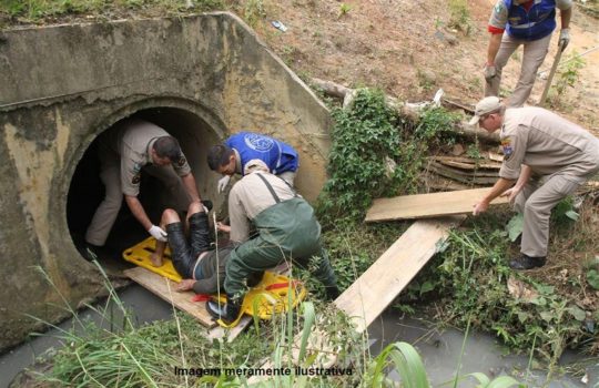 Na manhã de ontem, após suspeitarem do desaparecimento, populares entraram no bueiro e encontraram o corpo debaixo d’água.
