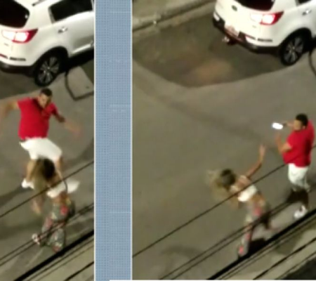 Ele disse à polícia que vinha discutindo com a namorada após uma balada e pararam nessa rua para discutir. Ele foi indiciado por lesão corporal e pela Lei Maria da Penha e deve se apresentar à Justiça.