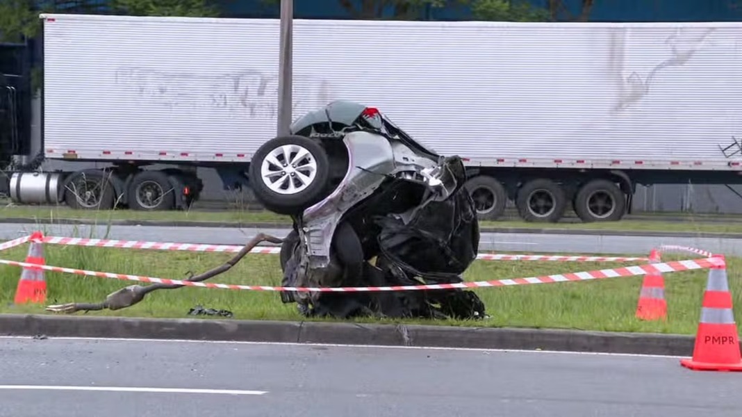 Um trágico acidente na madrugada deste sábado (30) resultou na morte de um homem de 31 anos em Curitiba. O carro em que ele estava se partiu ao meio após colidir contra um poste na Avenida Comendador Franco, também conhecida como Avenida das Torres.  Com o impacto, a parte frontal do veículo foi parar na calçada, enquanto a seção traseira foi arremessada para o canteiro central da avenida. Peças do automóvel ficaram espalhadas pela via, e uma parte do veículo permaneceu presa ao poste.