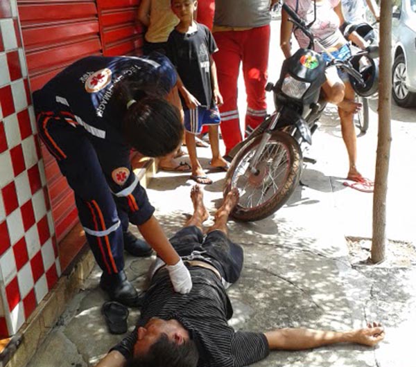 Vários populares que presenciaram a cena foram socorrer o homem, que em seguida caiu desmaiado