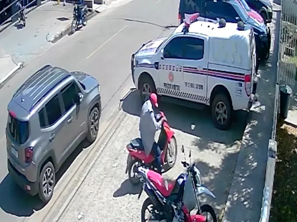 Registrado por uma câmera de segurança, o homem aparece de moto em frente a delegacia, e nitidamente demonstra dificuldade em estacionar o veículo. Assim que estaciona a moto, ele caminha até a entrada da delegacia devagar, aparentemente cambaleando.